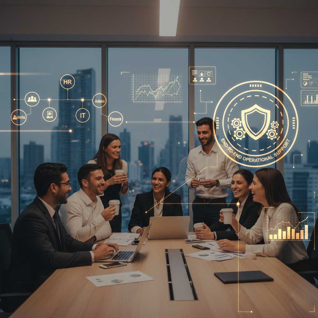 Legal entity, office space, IT infrastructure, compliance, and initial finance process setup handled from Day 1.